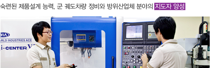 - Àü°ø¼Ò°³ : ±â°è°ú´Â ÃÖ±Ù Á¤¹Ð±â°è ºÎǰ, ÀÚµ¿Â÷·Ç×°ø±âºÎǰ µîÀÇ Àη¼ö¿ä°¡ ±ÞÁõÇϰí ÀÖ¾î °¡°ø°úÁ¤À» ÀÍÈù ¼÷·ÃµÈ Á¦Ç°¼³°è Àü¹® Àη°ú ¼³°è´É·ÂÀ» °®Ãß°í ÀÖ´Â Àü»ê ÀÀ¿ë±â°è°ø Àü¹® ÀηÂ, ±×¸®°í ÀÚµ¿Â÷¿Í ±â°èÀÇ º¹ÇÕ±â¼úÀ» °®Ãß°í ÀÖ´Â ±º ±ËµµÂ÷·®Á¤ºñ ¹× ¹æÀ§ »ê¾÷ü ºÐ¾ßÀÇ Àü¹®ÈµÈ ¿µ¸¶À̽ºÅÍ ¾ç¼ºÀ» ¸ñÇ¥·Î ÇÏ´Â ÇаúÀÔ´Ï´Ù.