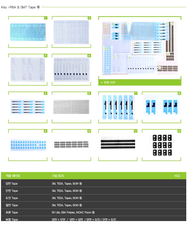 (ÁÖ)¼¼°æÇÏÀÌÅ×Å©´Â LCD ¹× ÈÞ´ëÆù¿ë TSP Tape¸¦ Àü¹®ÀûÀ¸·Î Á¦ÀÛÇϴ ȸ»çÀÔ´Ï´Ù. °í°´ÀÇ ¿ä±¸»çÇ׿¡ µû¶ó ´Ù¾çÇÑ ÇüÅ ¹× Color Á¦ÀÛÇÏ¿© °í°´¸¸Á·À» ½ÇÇàÇϰí ÀÖ½À´Ï´Ù. TSP Tape, OCA Tape, Display Tape, Key PBA & SMT Tape¿Í ±× ¿Ü ±âŸ ´Ù¾çÇÑ Tape¸¦ Á¦ÀÛÇϰí ÀÖ½À´Ï´Ù.